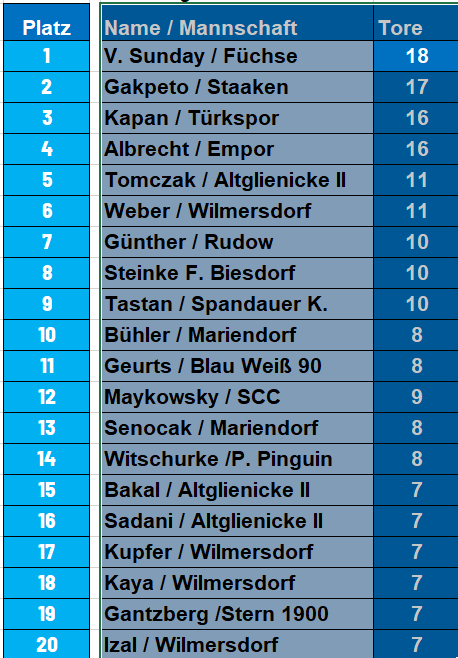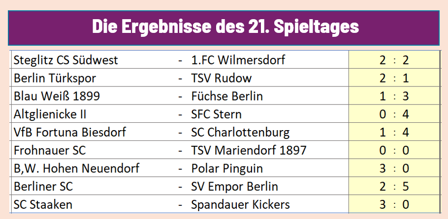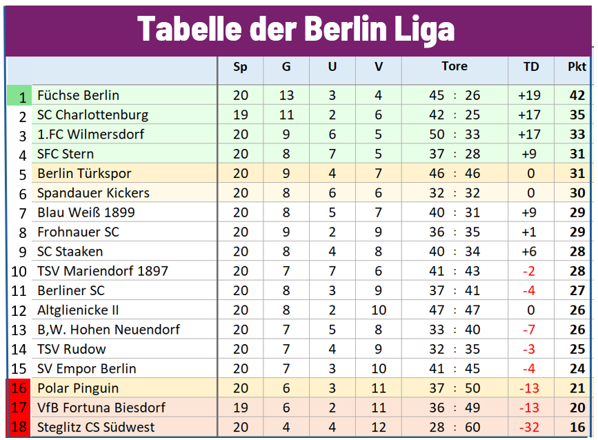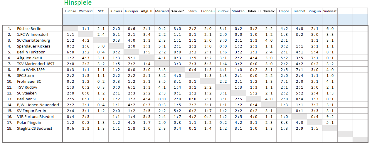 Die Kreuztabelle der Berlinliga